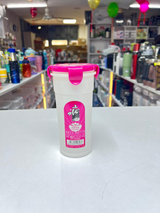 A spacious and versatile 600ml plastic storage cup featuring a tight snap-lock blue lid that keeps your drinks, snacks, and powdered items securely sealed and fresh.