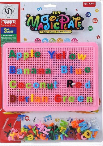 -Includes a sturdy pegboard and colorful alphabet, numbers, and math symbols