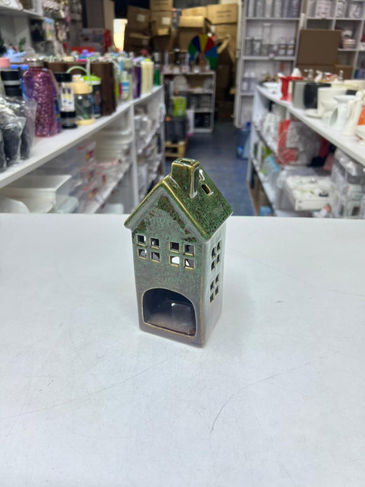 The Arleen Lichthaus Mini Ceramic House is a decorative piece designed to add charm to any home or office space. With a vintage-inspired green and brown finish, it can serve as a tealight holder, small storage container, or simple décor accent. Its compact size makes it perfect for shelves, desks, or table displays.