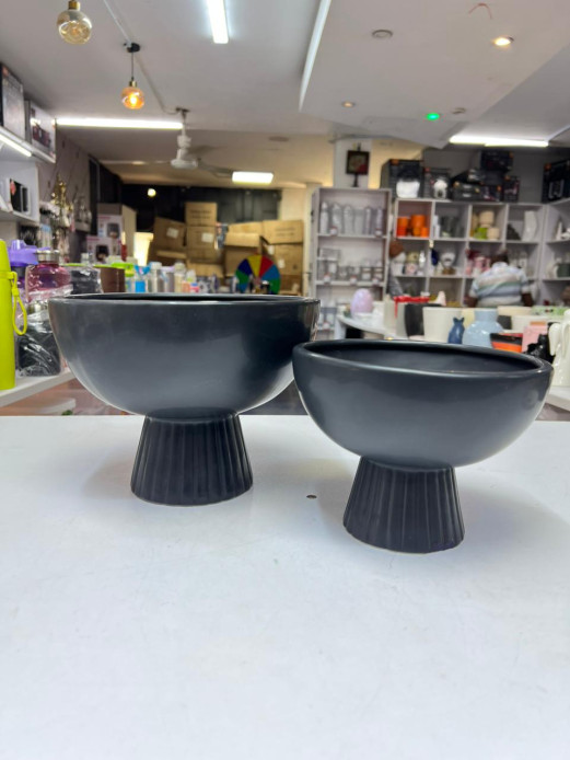 β« Black Ceramic Pedestal Bowl/Planter – Elegant & Versatile Décor Piece