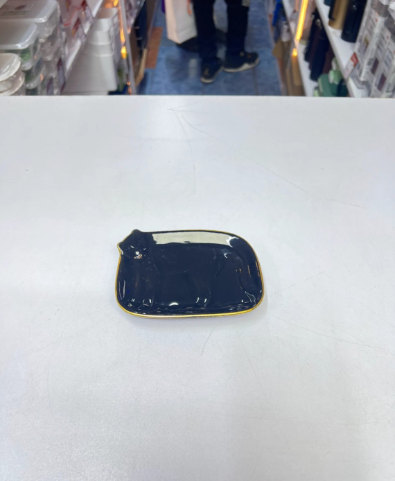 Cat-shaped ceramic trinket dish or tray with gold trim.