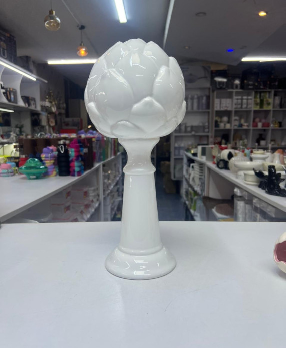 A stylish ceramic artichoke figurine perched on a pedestal, combining modern elegance with natural inspiration. Perfect as a decorative accent, it adds texture and interest to shelves, tables, or mantelpieces.