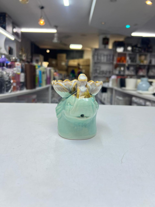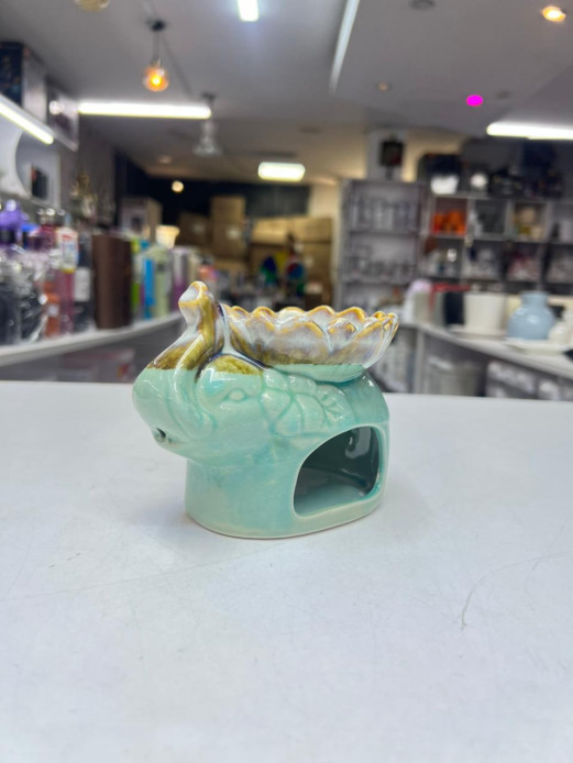 π Ceramic Elephant and Lotus Essential Oil Burner – Aromatherapy & Décor