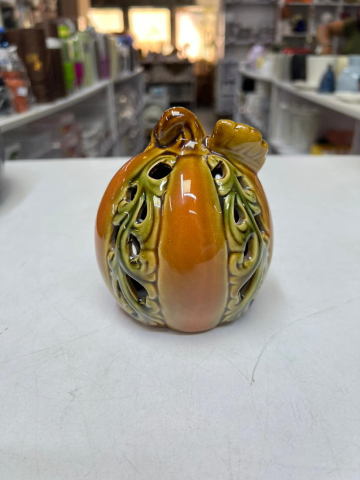 🎃 Ceramic Pierced Pumpkin Tea Light Holder – Autumn Lantern Decorative Accent