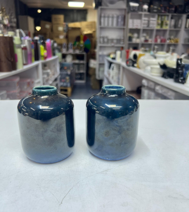 Ceramic Blue & Silver Reactive Glaze Vase
