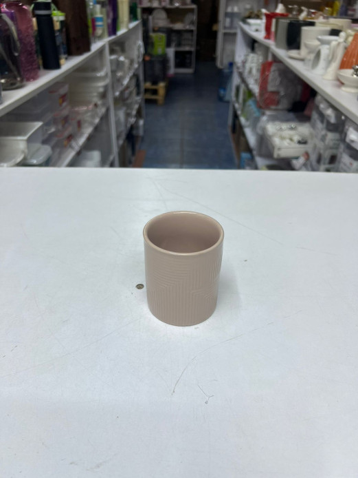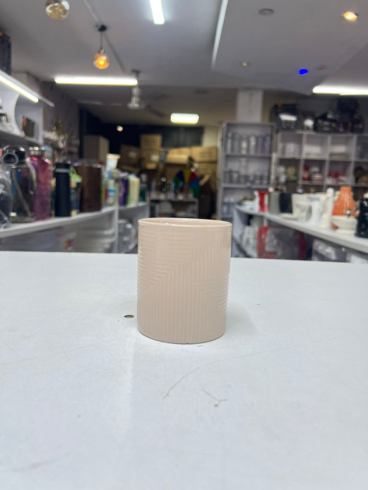 This chic cream brown ceramic geometric planter features layered square-shaped grooves, giving it a stylish, textured look. Perfect for small plants, succulents, or cacti, it adds a warm, modern touch to your home or office décor. Designs like this are similar to collections by DecMode. β¨