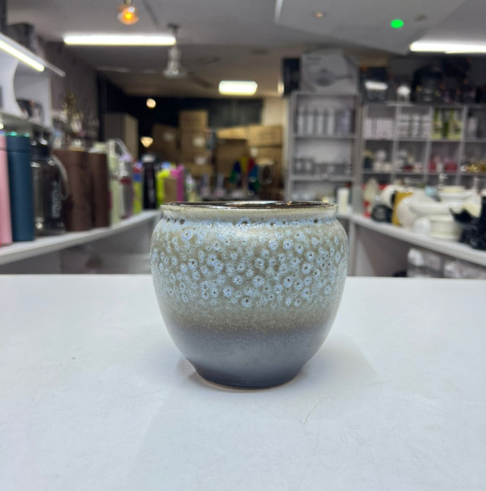 -Artistic glaze design – Speckled blue-and-white finish blending into a dark grey base.