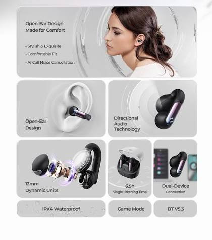 Experience lightweight, secure listening with the Havit Openbuds 1 (Model TW980) — designed with a flexible clip-ear fit that keeps you comfortable while staying aware of your surroundings