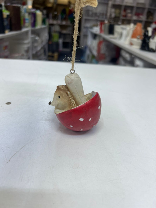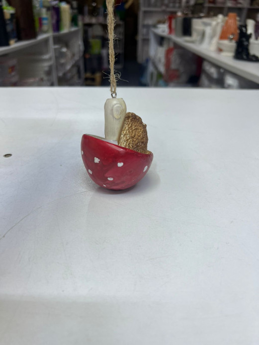 Add a touch of whimsical charm to your home with this decorative collectible figurine, featuring a tiny hedgehog sitting in a red, spotted mushroom. Perfect for shelves, desks, or fairy garden displays, it brings a playful, nature-inspired accent to any space. ✨🏡