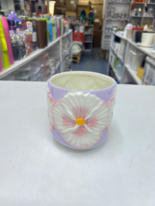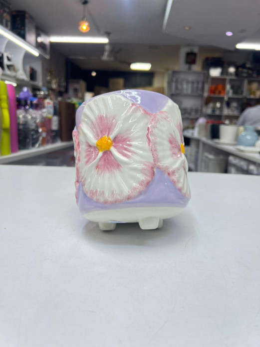 Bring vibrant floral charm to your home with the Openook Bright Flower Pot. Featuring a stunning 3D pansy or hibiscus design, this decorative ceramic planter combines artistry and function, making it a perfect accent for any space. Its lavender-purple base and hand-painted relief detailing create a cheerful and elegant statement.