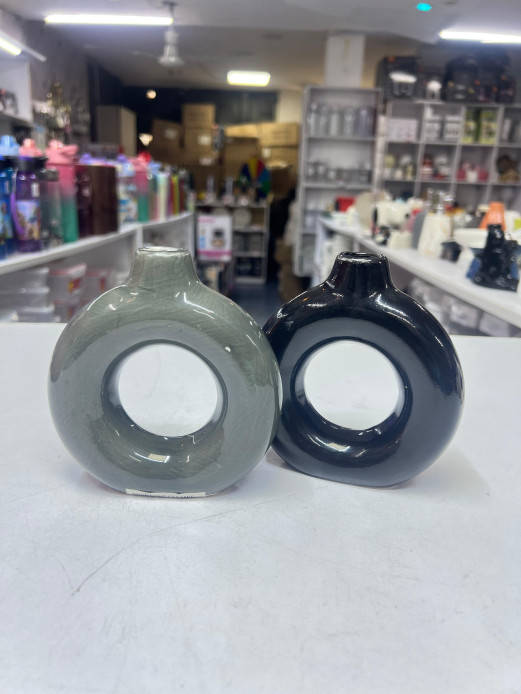 Add a creative twist to your décor with these Porcelain Ceramic Donut Flower Vases. Designed with a distinctive donut-shaped silhouette, these vases blend modern artistry with clean porcelain craftsmanship. Their sculptural form makes them eye-catching even without flowers—perfect for contemporary, minimalist, or artistic interiors.