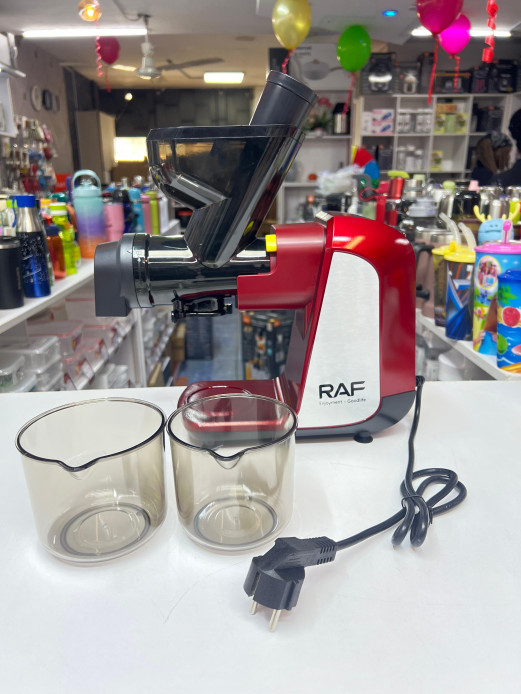 This RAF Juicer is a slow masticating juicer designed to efficiently extract juice from fruits and vegetables while preserving nutrients.