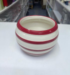 Round Red & White Striped Ceramic Planter / Bowl