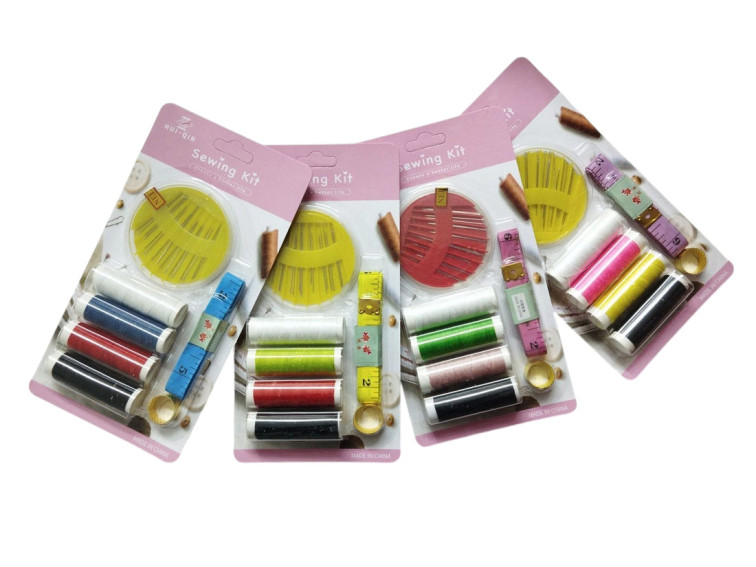 โจ Complete Set – Includes threads in multiple colors, needles, scissors, measuring tape, buttons, thimble, pins, and more.