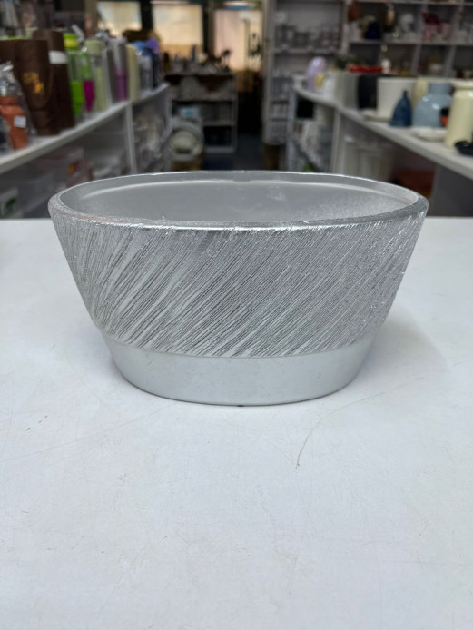 Silver Ceramic Decorative Planter or Bowl – Elegant Metallic Home Accent