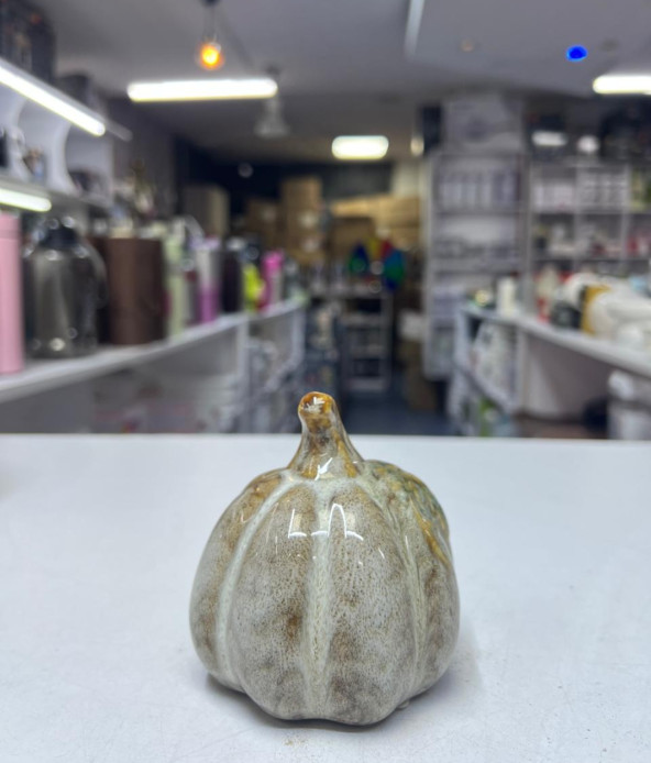 Add a warm, cozy touch to your décor with this small ceramic pumpkin figurine. Finished in a soothing beige and brown glaze, it brings subtle autumn charm and rustic elegance to any space. Perfectly sized for easy styling, this piece blends beautifully with neutral, farmhouse, and seasonal interiors.