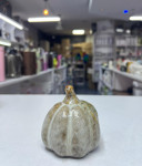 Small Ceramic Pumpkin Figurine – Beige & Brown Glaze