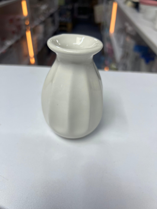 🏺 Small White Ribbed Ceramic Vase