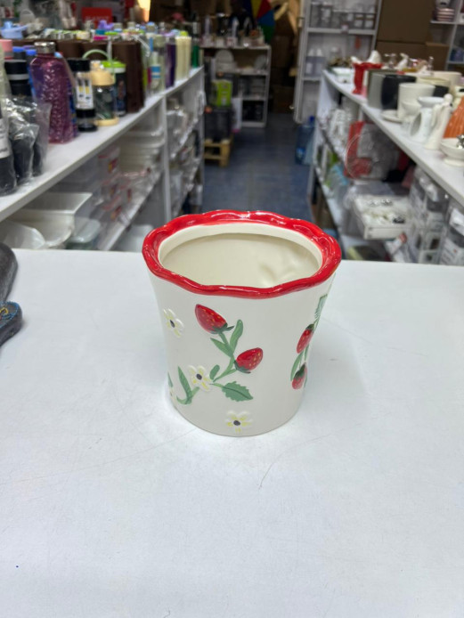 π Strawberry-Themed Ceramic Utensil Crock — Fun & Functional Kitchen Décor