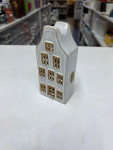 🏠 White & Brown Ceramic Canal House Tealight Holder – Amsterdam-Inspired Decor
