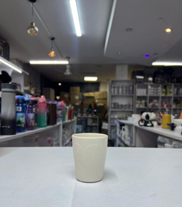 This elegant white ceramic cup features a subtle linear wave pattern on the exterior, adding refined texture and visual interest while maintaining a clean, minimalist look. Perfect for everyday use or styled table settings.