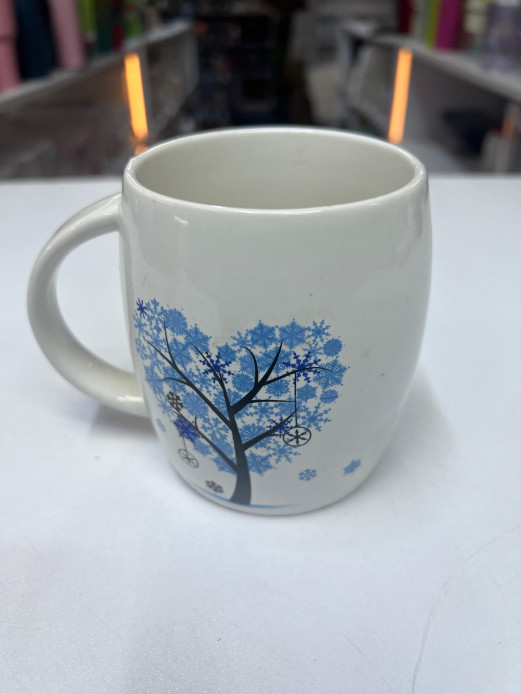 โ๏ธ White Ceramic Mug with Blue Tree Design