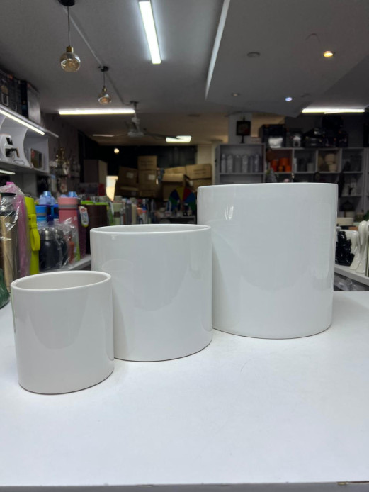 Elevate your indoor greenery with these white cylindrical ceramic planters, designed for a sleek, modern aesthetic. With their smooth finish and timeless shape, these planters provide the perfect balance of simplicity and sophistication, making them ideal for showcasing your favorite plants in any space.