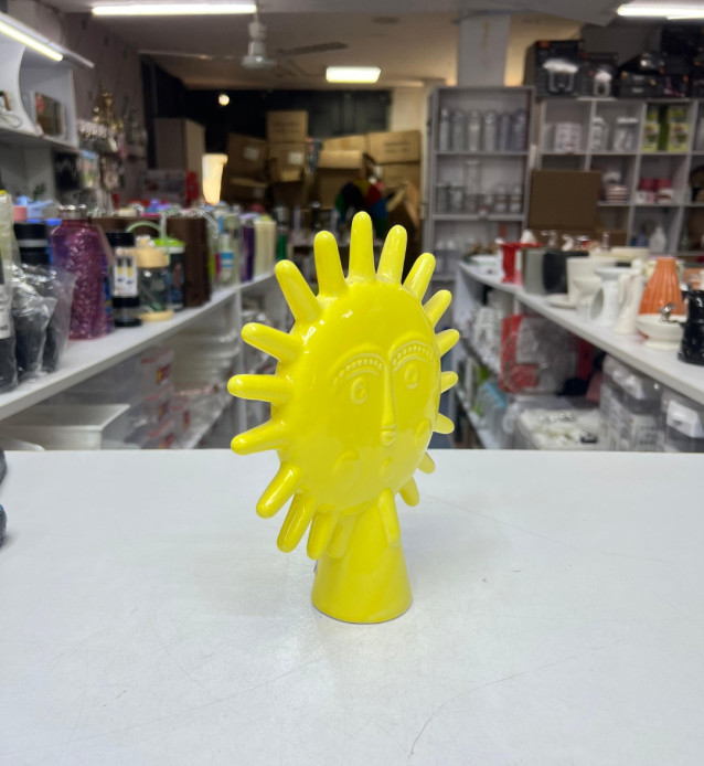 Bring a pop of color and contemporary style to your space with this Yellow Ceramic Sculpture. Crafted from high-quality ceramic with a smooth, vibrant finish, this eye-catching piece serves as both a decorative accent and a statement art object. Perfect for shelves, coffee tables, mantels, or desks, it adds personality and visual interest to any home or office décor.
