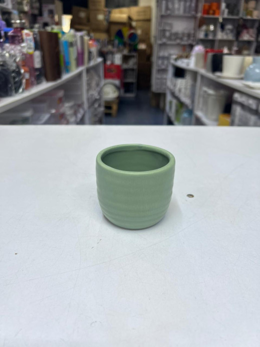🌿 York Ceramic Mini Pot – Sage Ribbed Planter