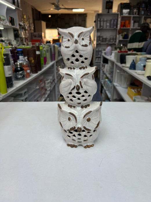 🦉 White Pierced Owl Totem Candle Holder / Oil Burner